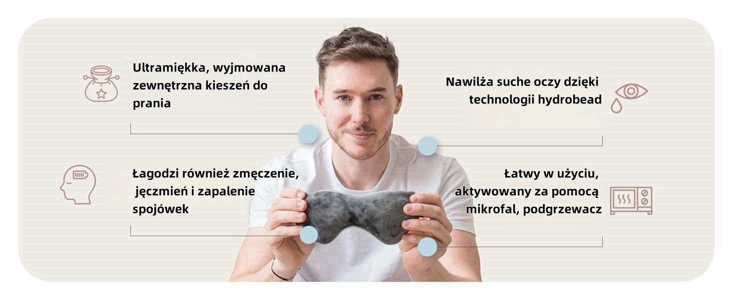 - Przynosi ulgę suchym i zmęczonym oczom - Nawilżające ciepło łagodzi napięcie, poprawia krążenie i łagodzi podrażnienia.