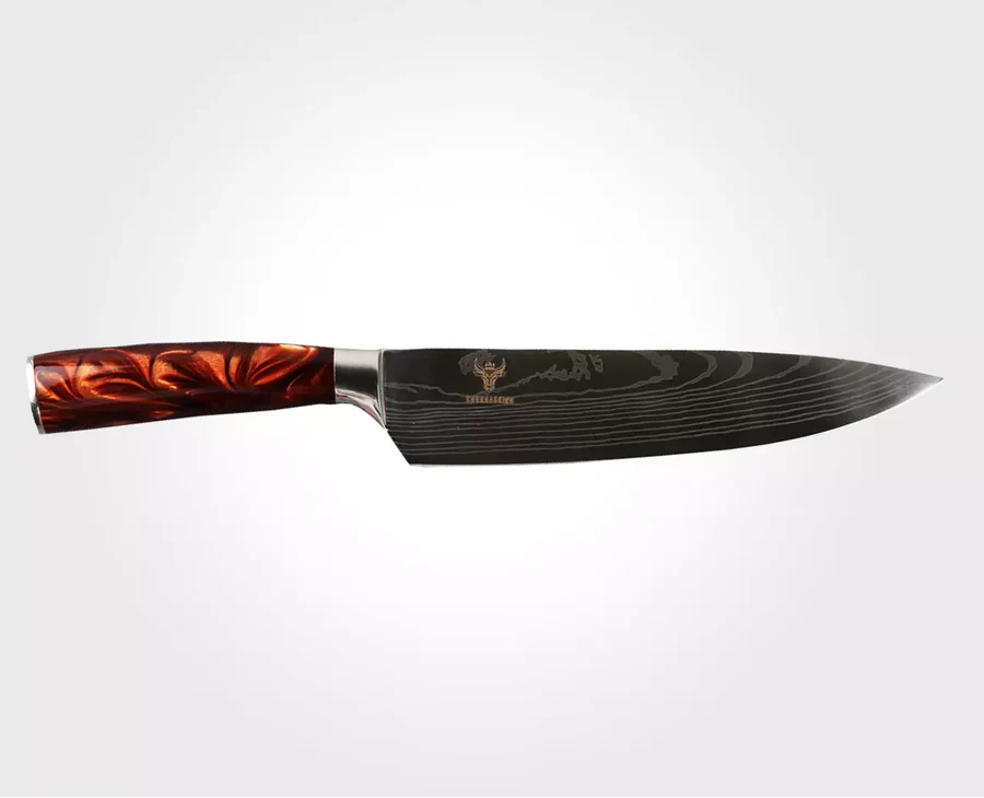 Odkryj czarny nóż szefa kuchni, wykończenie ze stali damasceńskiej, standard jakości